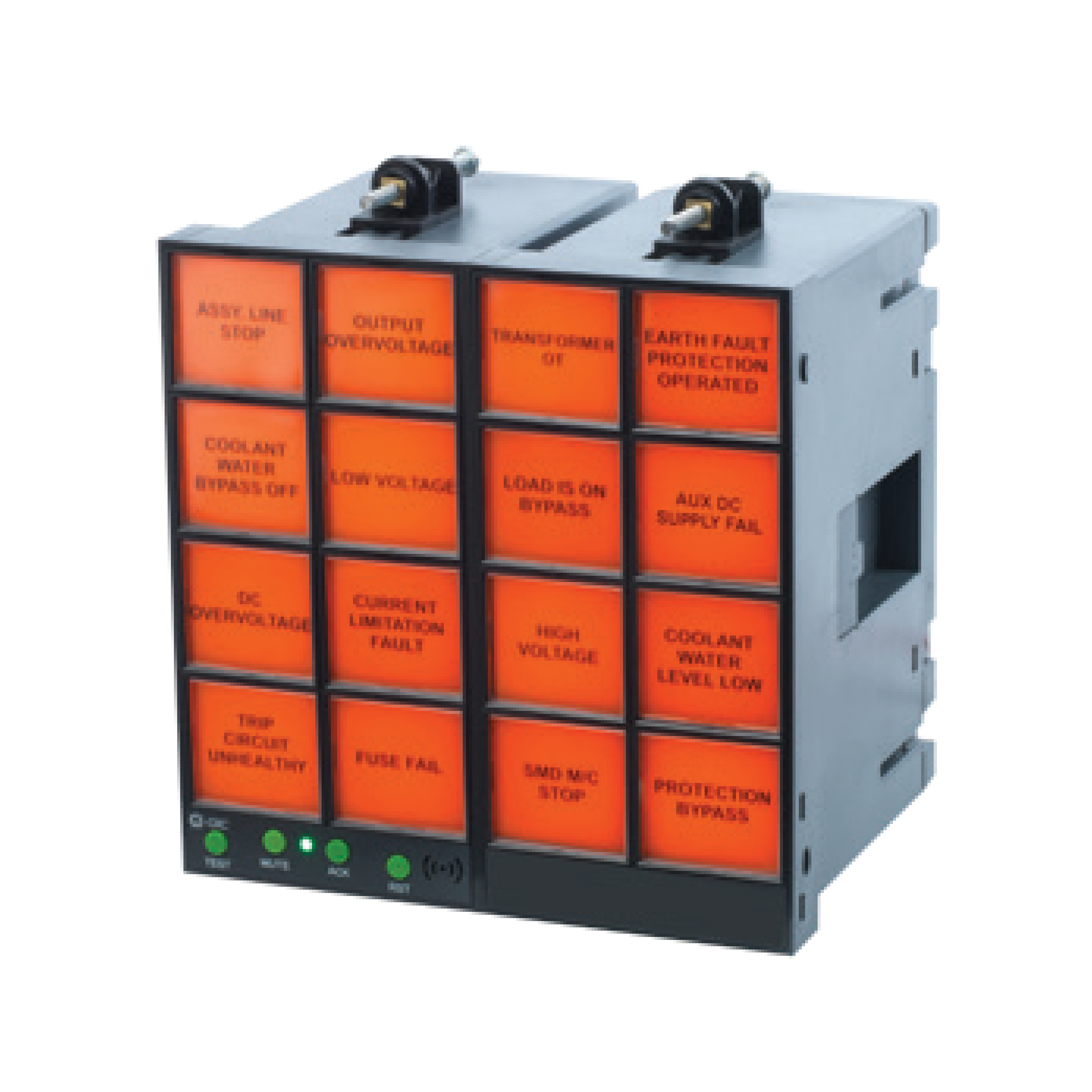 - Integral push buttons for Test, Acknowledge, Mute and Reset operations
